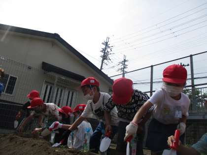 今日は,地域の方にお世話になって,さつまいもの苗を植えました。船底植えという方法で茎を下にして植えました。子どもたちは,スコップで畝の真ん中を細長く掘って,優しく苗を置いて上から土を被せていました。これから1週間の間が大事だそうです。しっかりと水をやっていきたいですね。