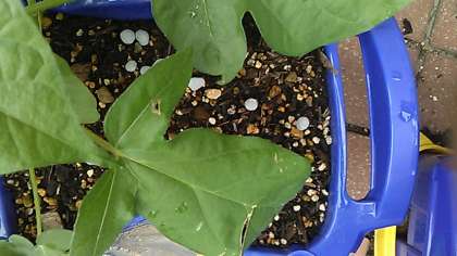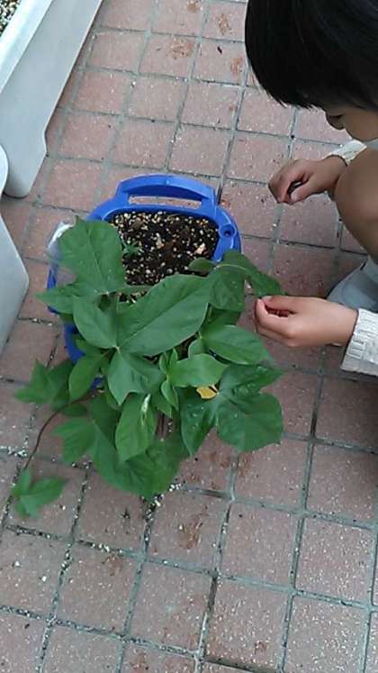 毎朝の水やりのおかげで,アサガオの葉がどんどん大きくなっています。