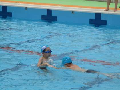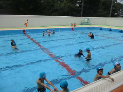 次に,さめグループ,うさぎグループ,かめグループに分かれて泳ぐ練習をしました。これから,少しずつ泳ぐ練習をして,泳げる距離を伸ばしていけるといいですね。