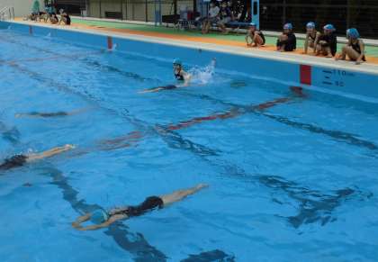 先週は雨でできなかったプール。今日は,いい天気の中,楽しくプール学習をすることができました。今日は「けのび」の練習をしました。手をしっかり伸ばして,力を抜いて,しっかりと壁をキックすることを意識しました。