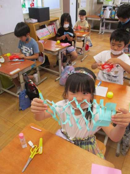 飾りは折り紙で天の川や提灯などを作りました。