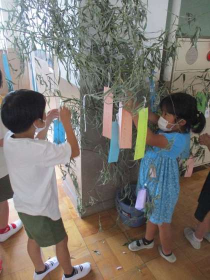 短冊には,習いたてのひらがなでそれぞれお願い事を書きました。