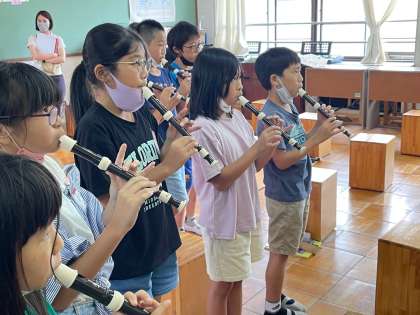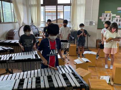 音楽の時間,合奏の練習をしています。