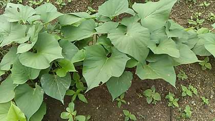 地域の方々にお世話になって植えたサツマイモの苗。