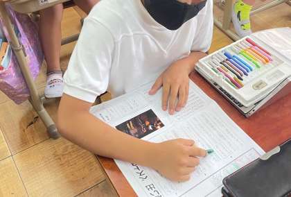 それぞれが心に残ったことを書いたり、写真を貼ったりして、楽しかった思い出を新聞に書きました。