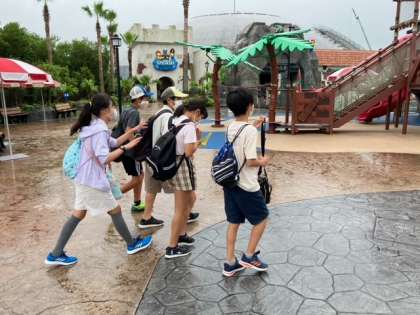 地面は濡れていますが、今は雨も止んで子どもたちは楽しそうです!