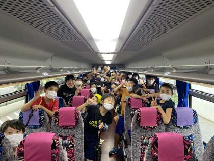 バスの中でも、子どもたちはまだまだ元気いっぱい!