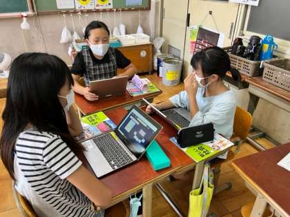 それぞれの考えをシンキングツールにまとめ,うまく班の意見をまとめることができました。