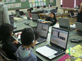4年生は国語の学習で、ことわざブックを作っています。1組に続き今度は2組が、新町小学校のお友達に見てもらう「ことわざブック紹介映像」をコンピュータ室で作っています。写真・テロップ・ナレーションを工夫して、しっかり伝わる映像になるよう頑張っています。