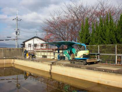 以前からプールの漏水があり,そのたびに教育委員会に工事を願いしていました。ようやく漏水していると思われる箇所を調べる工事が始まりました。工事期間は今週一週間の予定です。ただ今回の調査で漏水している箇所が確認できない場合は,他の場所の調査ということになります。工事期間中,第3グランドは使用できますが,工事車両が出入りします。何かとご迷惑をお掛けしますがよろしくお願い申し上げます。