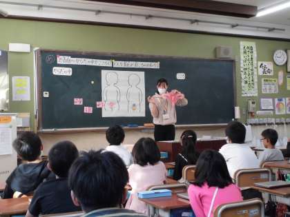 初めて聞く言葉や、耳にはしたことはあるがよく分からなかったことを学習することが出来ました。子ども達の興味本位ではなく,自分事として真剣に話を聞く姿が見られました。授業の最後に,もし周りで困っている人や悩んでいる人がいたら,どんな風に声をかけてあげればいいかを,班で話し合いました。個人差があることや,大人になるための大切な変化であることを知り,思いやりのある温かいい言葉を選んでいました。