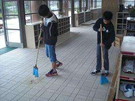 朝から雨で、しっとり湿った空気です。掃除時間に、ていねいに埃をモップで廊下から昇降口に集めました。空気が乾燥している晴れた日より、埃が舞い上がらずうまくはき掃除ができました。