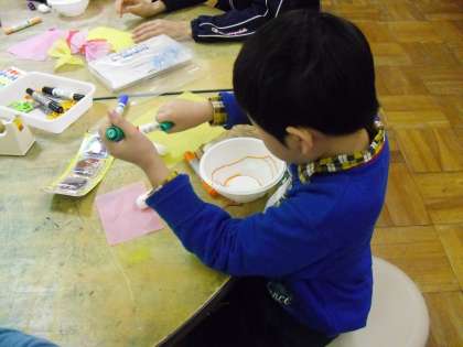 小さな巨匠展が、この月の25日から29日まで、京都市美術館別館(京都会館となり)で開催されます。その共同作品作りをしました。今回の伏見中支部のテーマは、「開いてびっくり キラキラ ポン」です。さてどんな作品になるのか。17日も、共同制作をします。