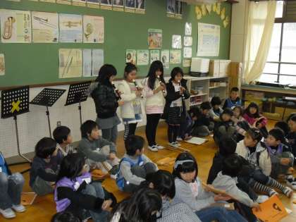 今日は音楽室で、まず立ち位置を決めました。そして台本の流れに沿って練習をしました。言葉、動き、リコーダーとがんばりどころはそれぞれ違いますが、一人ひとりが自分の役割をしっかりやりとげて、47人分のがんばりが一つになることを目指したいなと願っています。