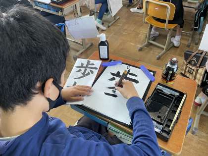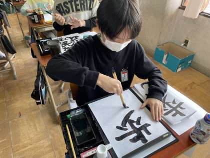 漢字よりもひらがなを少し小さく書くことや用紙の中心をそろえて字を書くことなど、いくつかのポイントに気を付けながら丁寧に書きました。