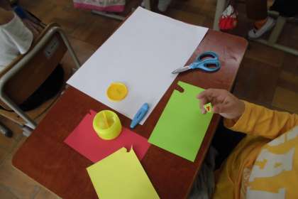 まずは画用紙を何枚も重ねながら「種」を作っています。