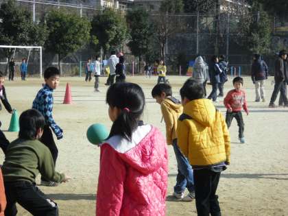 休み時間になると、足早に運動場へ行き遊んでいる姿が見られます。