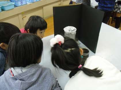 今日は、線香の煙を使って空気の温まり方の実験をしました。