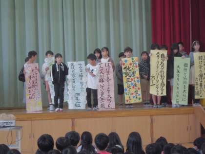 自分を、友達を大切にするために……それぞれのクラスで決めた目標をクラスの代表が発表しました。校長先生からの人権についてのお話も聞きました。