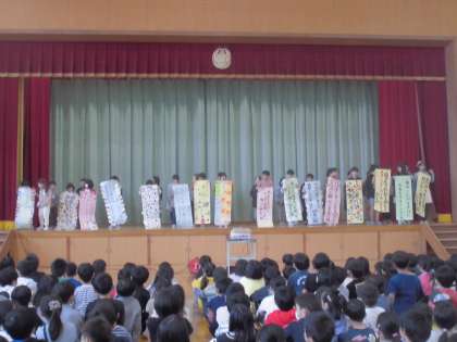 今年は全校で体育館に集まっての集会でした。4年生の子どもたちにとっては、初めての体育館での人権集会でした。