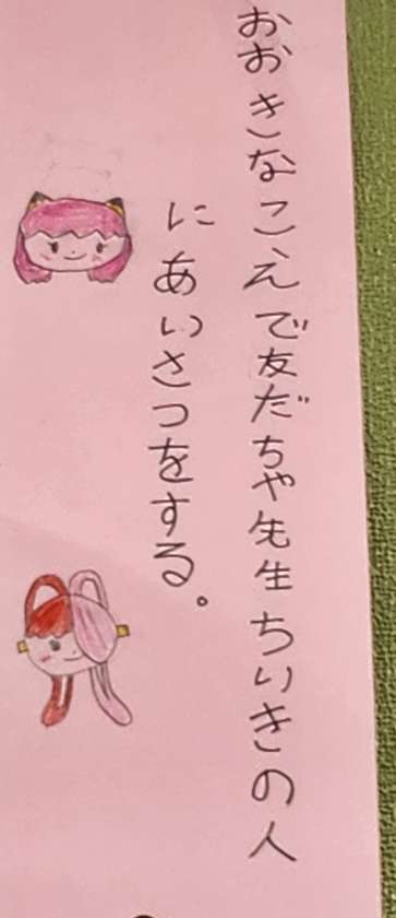 「じゅぎょう、あいさつ、そうじ、ともだち」