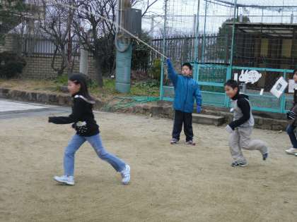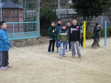 1月31日の大なわ集会に向けて、5年生といっしょに練習を始めました。読み聞かせからスタートしたきょうだい学年の5年生と力を合わせて、できるだけ回数多く跳べるようにがんばります。ちょっと苦手な3年生に「今や!」と入るタイミングを教えてくれるやさしい5年生ありがとう。