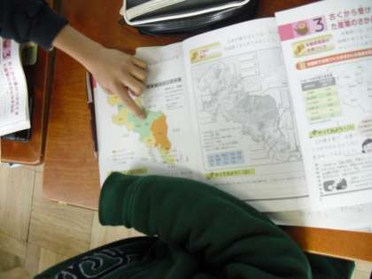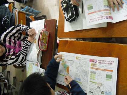 4年生の社会科では、地図使って京都府の土地の様子を調べています。