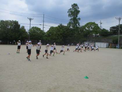 今年からできた陸上部は走った後、ソフトボール投げをしていました。