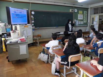 実際の写真や動画を見て、子どもたちは自分なりに“正しい行いとは?”ということについて”考えたようです。学習の最後には、「自分の行動が正しいか、いったん止まって考える。」「周りの人のことを考える。」といった振り返りが聞かれました。ご家庭でも、今日の学習で考えたこと、感じたことを話し合ってみてください。