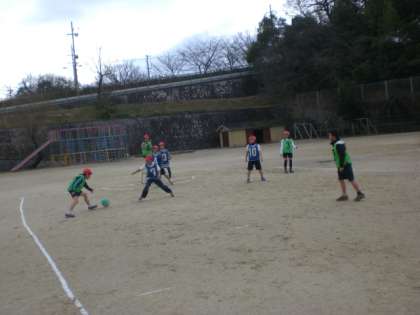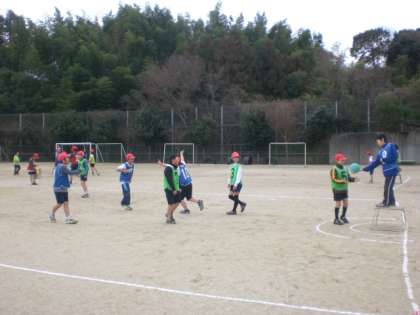 パスを上手につなげて味方のゴールマンにボールを渡します。