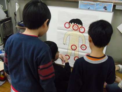 養護教諭から、身体の清潔の学習を教えてもらいました。日頃、ほかの先生方から教えてもらう機会が少ないので、とってもうれしかったようです。手の洗い方を教えてもらいました。身体の汚れやすいところを考えたり、お風呂の入り方をしてみたりもしました。