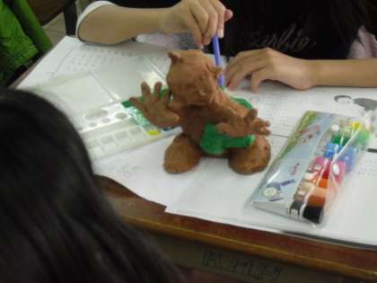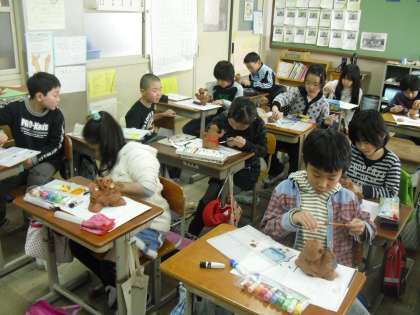 今日の図工で、前回粘土で作ったおすもうさんに色をぬりました。色はきれいな色を作って塗っていました。名前を考えるところで、強そうな名前を考えるためにみんなかなり悩んでいました。
