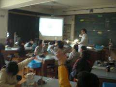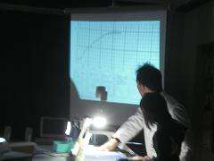 今日は1組が理科室で、あたためることによる水の変化の実験をしました。沸騰すると温度が横ばいになることを、グラフを大きく拡大提示して説明し合っています。理由を具体的に分かりやすく示すために、理科室でもICT機器が活躍しています。