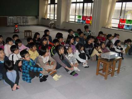 2つ目は,「じごくのそうべえ」です。2人で朗読してくださいました。息がぴったり合っていて,読み声を聞いていると,とても様子が伝わってきて,鬼の「はくしょん,いたたたた・・・,ブーッ」には,思わず微笑んでいました。