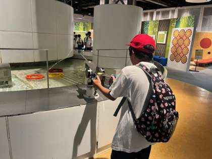 科学館内には、おもしろい仕掛けのある実験道具がたくさんで、子ども達は大興奮です。