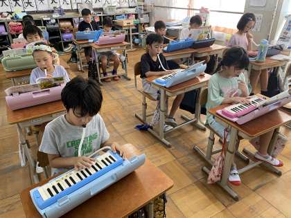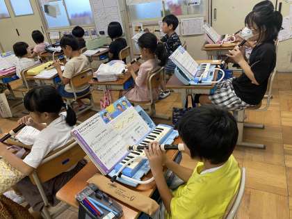 鍵盤ハーモニカとリコーダーで合奏をしています。
