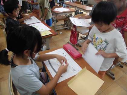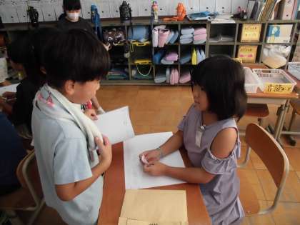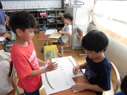 英語活動では、友だちにあげるサラダつくりに取り組んでいます。