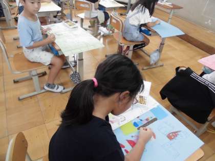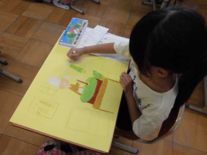 どんな色がいいか、登場人物はどんな気持ちかと考えながら、熱心に塗りこんでいました。