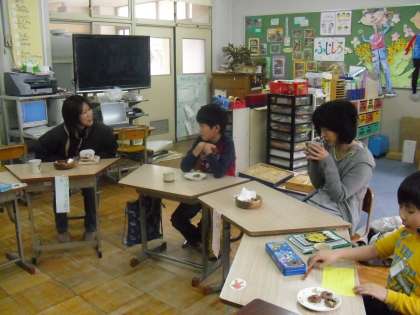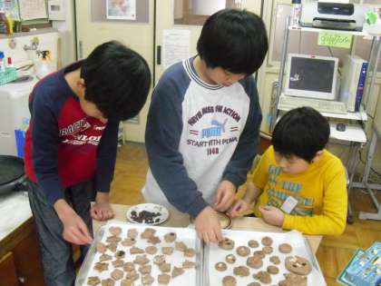 朝から、みんなで「チョコっとクッキー」を作り、参観授業で参観に来てくださったお母さんも交えて、6年生のお別れパーティをしました。司会は5年生がしてくれました。3年生が、はじめの言葉と終わりの言葉を云いました。5,6年生にとっては、去年一緒に彦根城へひこニャンを見に行ったことが1番の思い出だそうです。
