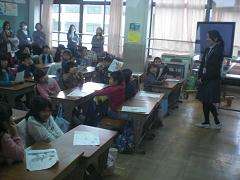 今日は低学年の参観日です。1年生は、1年間で一番心に残ったいいこと・がんばったことを絵と文に書いて発表しました。拡大提示して、大きな声ではっきりとおうちの方々やお友達の前で伝えました。