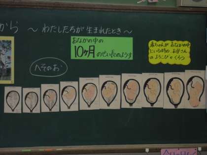 たくさんの保護者に見守られる中,この授業を受け,自分が家族をはじめ多くの人の愛情によって生まれ育ったことを自覚することができました。また,お母さんのおなかの中で10か月間育てられたことを知り,感謝の気持ちも抱くことができました。
