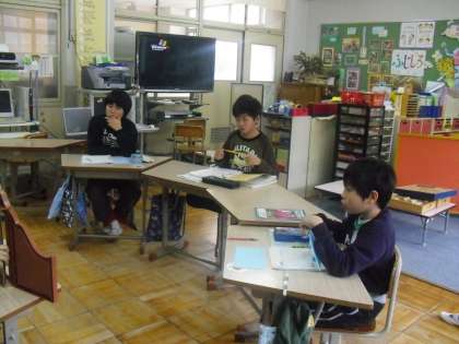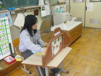 今日から2週間の予定で、教育大学から実習生が来ました。育成学級に来るのは、3年ぶりです。若いお姉さん先生なので、3人とも張り切っています。本当は、わたしが1番かも?紙芝居を読んでもらいました。