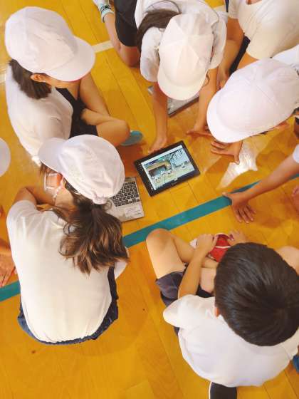 子どもたちのソーランは、力強い踊りになってきました。タブレットで撮影して自分の動きを確認したり、友達の踊りを見てアドバイスしたりして高め合っています!