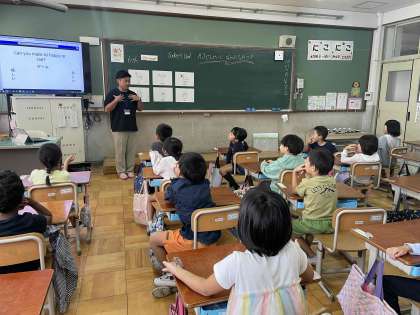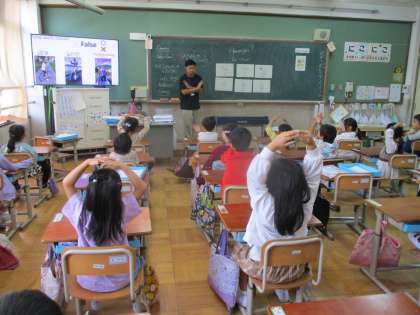 新しい英語の先生が、授業に来てくれました。「ハロー!」「ナイス!」と、これまでに学習した英語を使って楽しく話すことができました。子ども達も大好きな英語活動。これからの活動を子ども達はとても楽しみにしています。