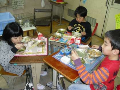 今日は待ちに待った,1年に1度しか出ない「三色ゼリー」の日。子どもたちは朝からワクワク楽しみにしていました。ちらし寿司とすまし汁もとっても美味しくて,ご機嫌の子どもたちでした。