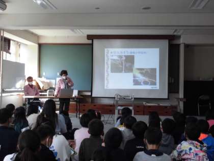 4年生では、社会科の『防災』の単元と、総合的な学習の時間の『安心・安全ふじしろキッズ』で、藤城地区の「防災」について探求していきます。そこで、まずはじめに地域の方からお話を聞きました。