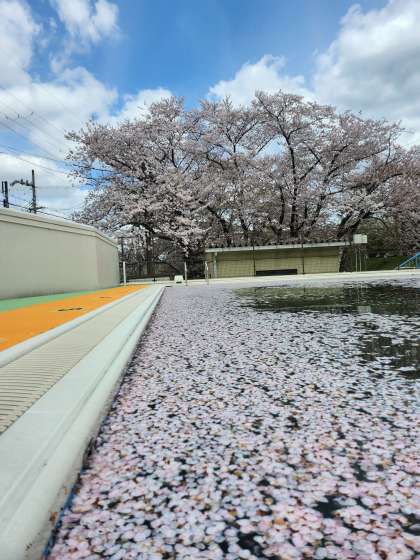 その花びらが舞い散ったプールもきれいです。