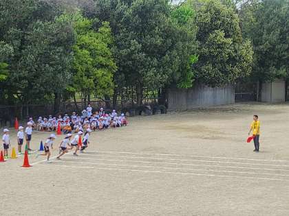 学年合同で50m走のタイム計測でした。