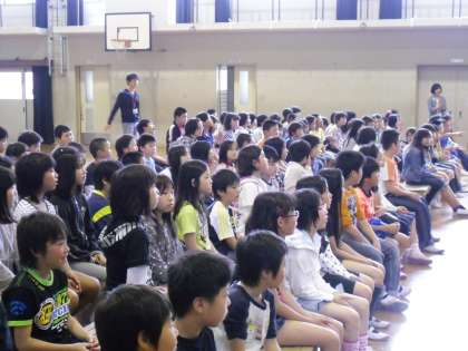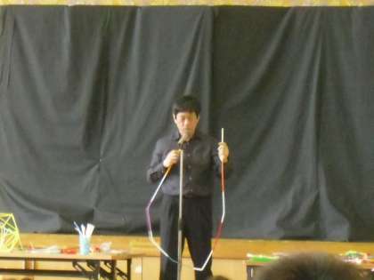 1日(火)の3・4時間目に,体育館で音楽鑑賞がありました。今年は,ストロー楽器演奏者の神谷徹さんが来て下さり,素敵な演奏をたくさん聞かせていただきました。ストローに様々な細工をほどこし,子どもたちがよく知っている曲を,高い音や低い音を上手に使った二重奏で聞かせて下さったり,ストローからシャボン玉やストローロケットが出てきたり,子どもたちは大喜びの2時間でした。