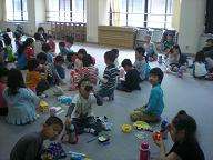 初めての遠足が延期になって残念なきもちの1年生。来週は晴れてほしいです。お昼ごはんは,多目的室で学年みんななでお弁当をいただきました。とてもおいしくて,この時間は遠足気分です。